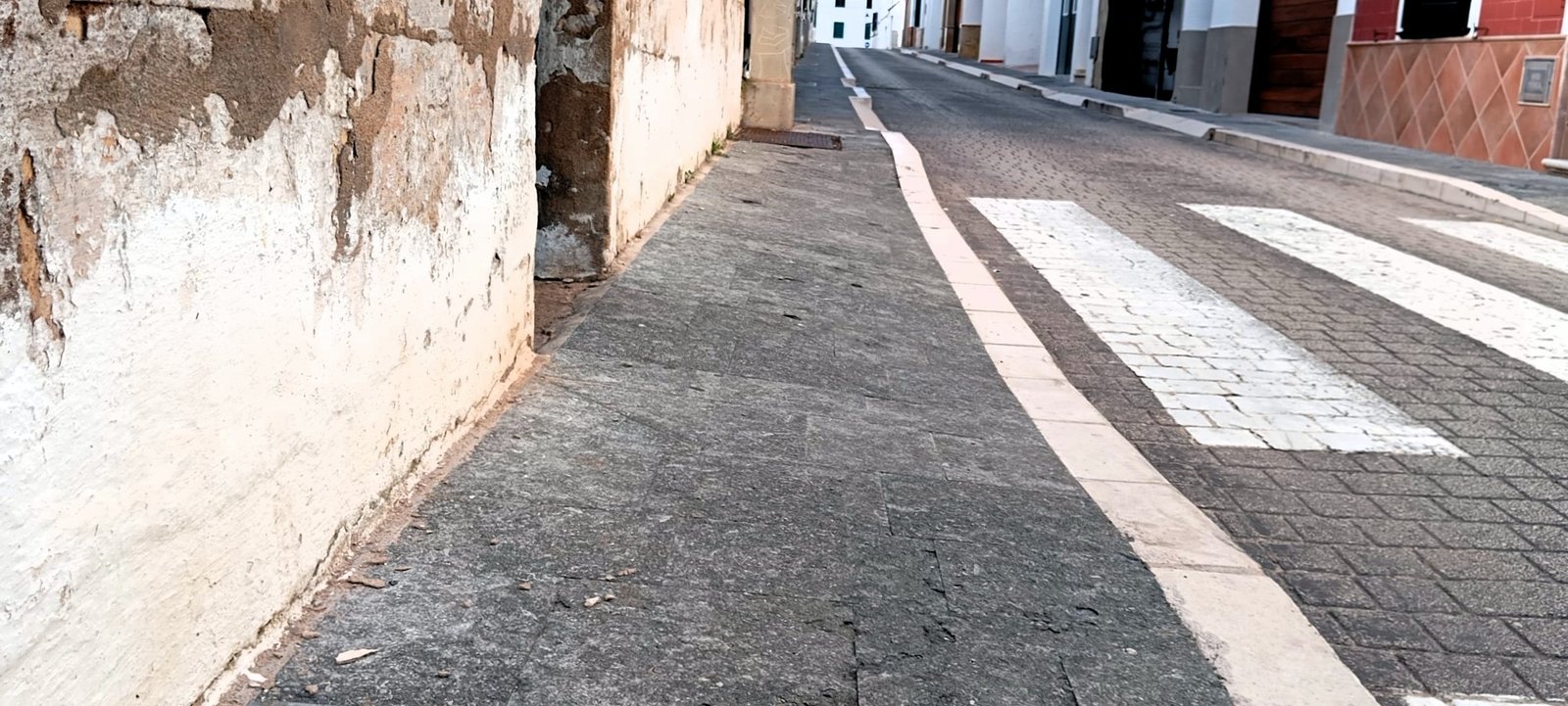 Las aceras de la calle Mirada del Toro en Es Mercadal presentan un serio problema de accesibilidad. En concreto, los pasos de cebra, que se encuentran flanqueados por desniveles laterales y las cajas registradoras de electricidad, que dificultan considerablemente la movilidad de personas mayores, personas con movilidad reducida y quienes utilizan sillas de ruedas.