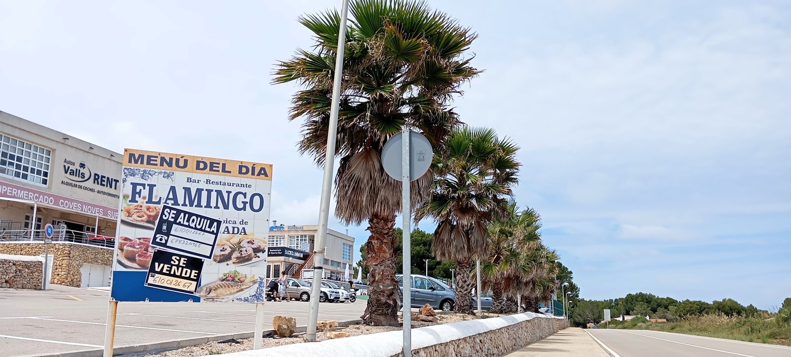 Un simple paseo por Arenal d’en Castell basta para comprobar la falta total de mantenimiento urbano. Palmeras secas sin podar, aceras rotas, papeleras oxidadas, zonas comunes abandonadas y un creciente número de locales cerrados o con carteles de “se alquila” colgados desde hace años. La estampa que recibe el visitante dista mucho de lo que se espera de un destino turístico en Menorca.